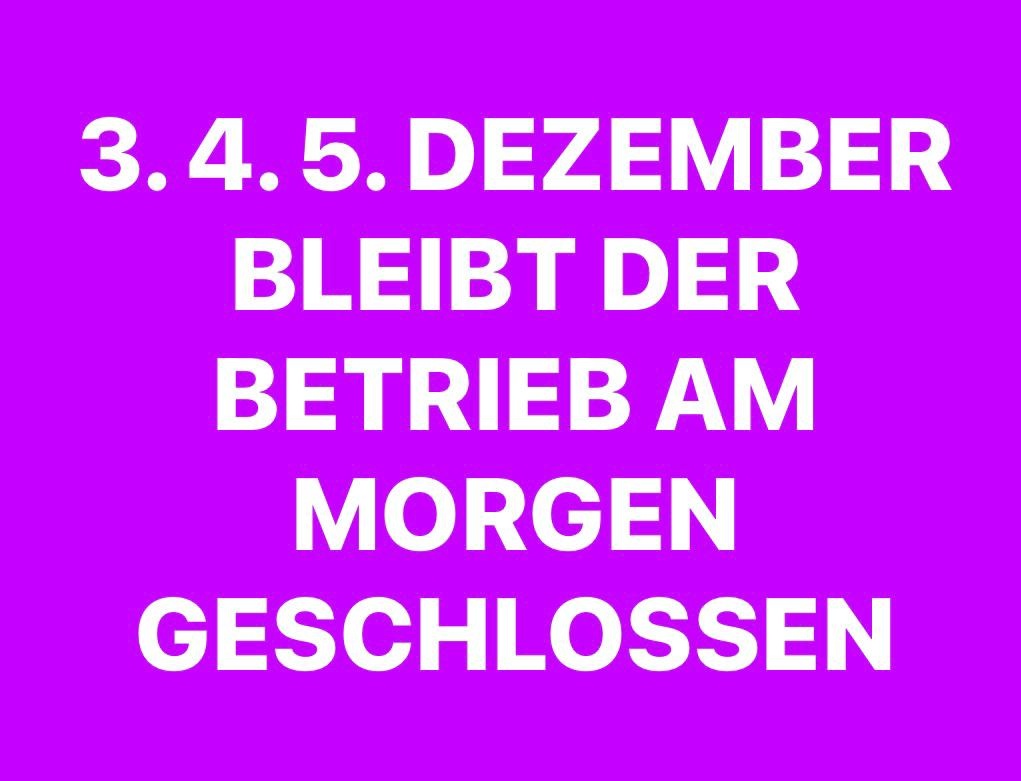 Vom 3.- 5. 12. BLEIBT DER BETRIEB AM MORGEN GESCHLOSSEN